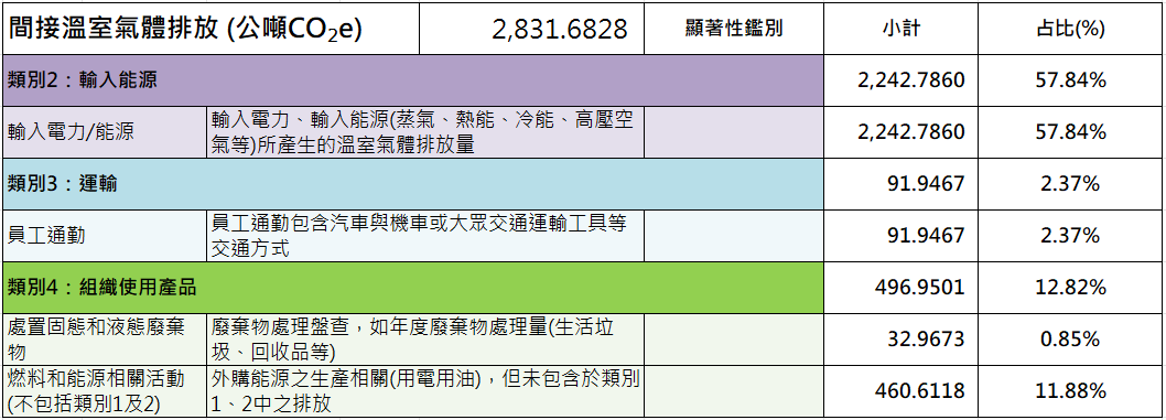 (1)溫室氣體:導持續導入各項節能改善措施,以降低營運過程所產生之溫室氣體排放量,2024年度溫室氣體排放量為3,877公噸
